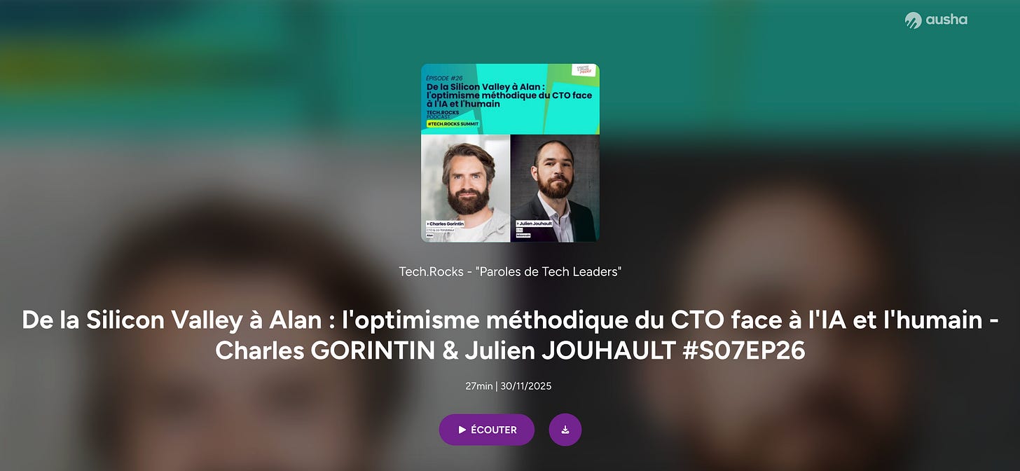 → Écouter : De la Silicon Valley à Alan : l’optimisme méthodique du CTO face à l’IA et l’humain – Tech.Rocks (27 min)
